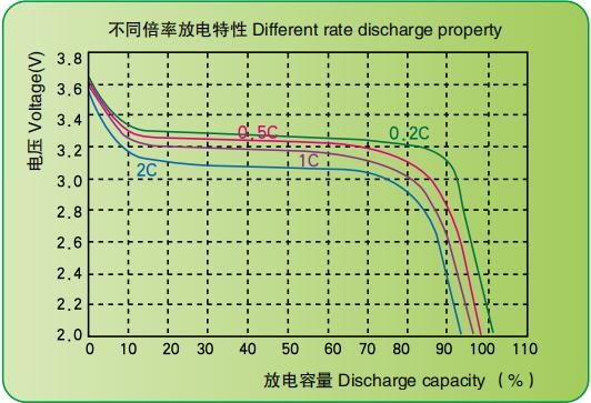 * 采用磷酸鐵鋰作為正極材料,電芯中值電壓為3.2V,平臺(tái)容量可達(dá)90%以上;* 電池循環(huán)壽命長(zhǎng),1ItA循環(huán)壽命>2000次,剩余容量>額定容量的80%;* 磷酸鐵鋰晶體中P-O鍵穩(wěn)固,分解溫度高達(dá)600℃,擠壓、針刺不爆炸,安全性能好;* 高溫充放電性能好,+70℃環(huán)境下放電容量>額定容量的98%;* 低溫放電性能好,常規(guī)電池:-30℃環(huán)境下單只放電效率>額定容量的40%;低溫電池:-40℃環(huán)境下單只放電效率>額定容量的50%;組合放電效率達(dá)70%~75%以上,隨著電池組只數(shù)的增加,放電效率會(huì)繼續(xù)增加。