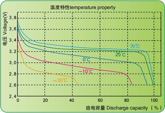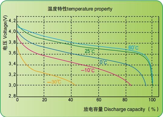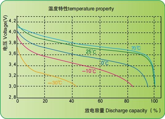 * 采用三元材料作為正極材料,倍率放電性能優(yōu)越,循環(huán)壽命800-1000次,剩余容量>額定容量的80%;* 高溫充放電性能好,+70℃環(huán)境下放電容量>額定容量的100%;* 低溫放電性能好,常規(guī)電池:-30℃環(huán)境下單只放電效率>額定容量的40%;低溫電池:-40℃環(huán)境下單只放電效率>額定容量的50%;組合放電效率達(dá)75%~80%以上,隨著電池組只數(shù)的增加,放電效率會(huì)繼續(xù)增加。