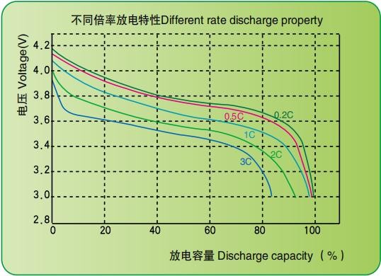 電池放電電流越大,放電容量越小,電壓下降更快。
